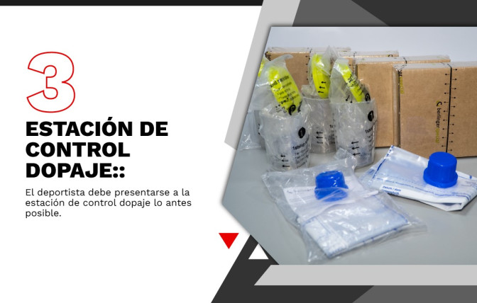 3. ESTACIÓN DE CONTROL DOPAJE: El deportista debe presentarse a la estación de control dopaje lo antes posible.