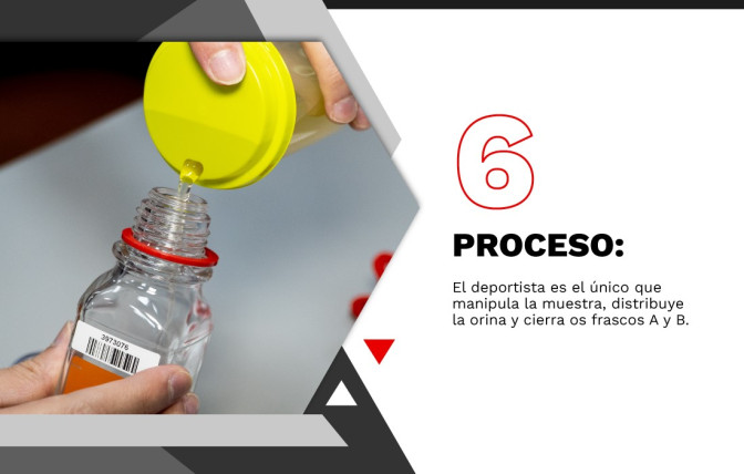 6. PROCESO: El deportista es el único que manipula la muestra, distribuye la orina y cierra os frascos A y B.