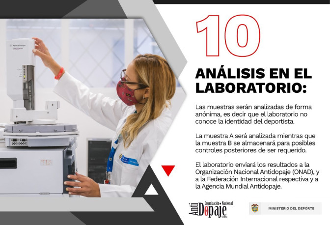 10. ANÁLISIS EN EL LABORATORIO: Las muestras serán analizadas de forma anónima, es decir que el laboratorio no conoce la identidad del deportista.