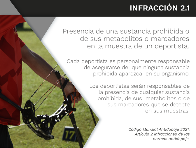 Foto: Uso o intento de uso por parte de un deportista de una sustancia prohibida o de un método prohibido.
