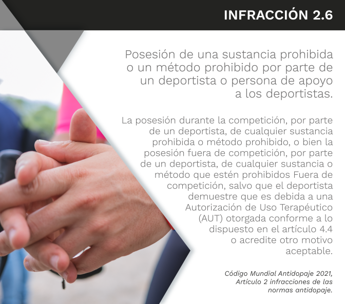 Foto: Tráfico o intento de tráfico de cualquier sustancia o método prohibidos por parte de un deportista u otra persona.