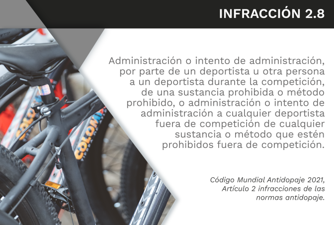 Foto: Administración o Intento de administración, de una sustancia o método prohibidos, a un deportista en competencia o fuera de competencia.