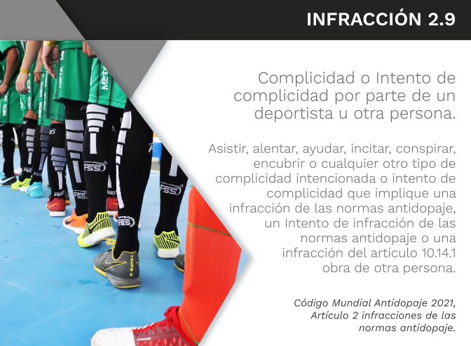 Foto: Complicidad o Intento de complicidad asistir, alentar, ayudar, incitar, conspirar, encubrir o cualquier otro tipo de complicidad intencionada o intento de complicidad que implique una infracción de las normas antidopaje.
