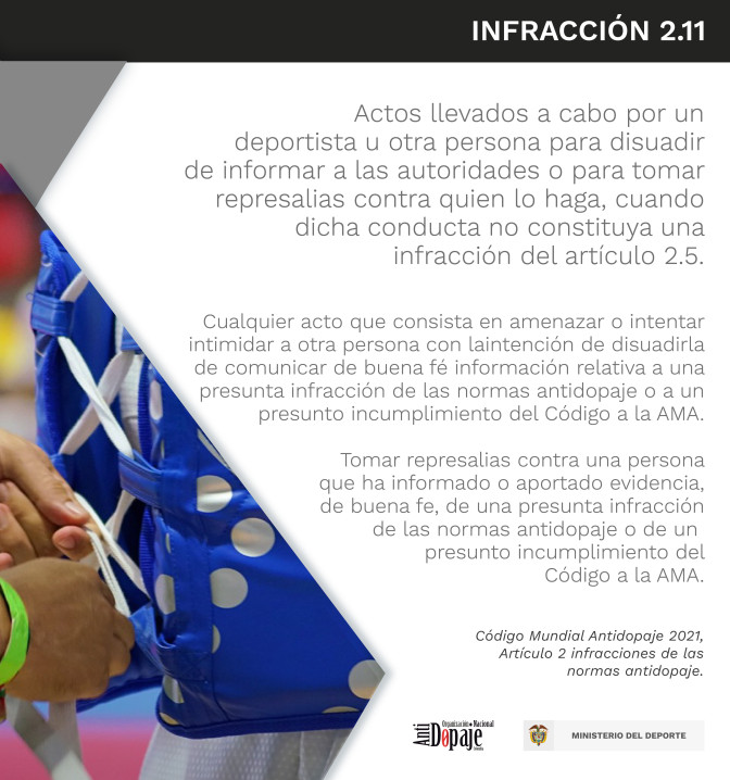 Foto: Cualquier acto que consista en amenazar o intentar intimidar a otra Persona con la intención de disuadirla de comunicar de buena fe información relativa a una presunta infracción de las normas antidopaje.