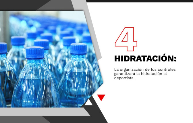 4. HIDRATACIÓN: La organización de los controles garantizará la hidratación al deportista.