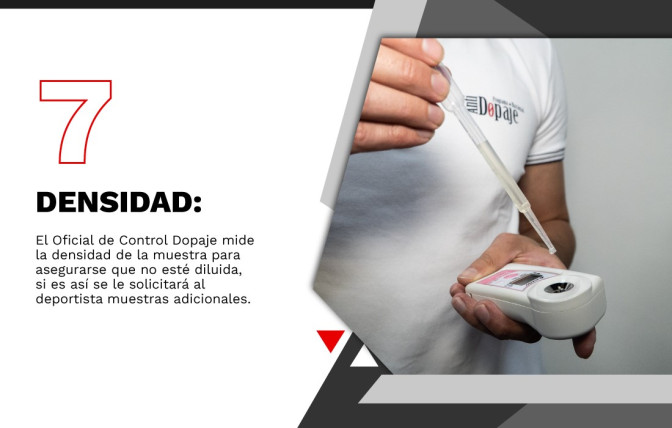 7. DENSIDAD: El Oficial de Control Dopaje mide la densidad de la muestra para asegurarse que no esté diluida, si es así se le solicitará al deportista muestras adicionales.
