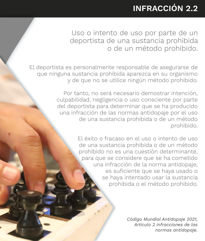 Foto: Uso o intento de uso por parte de un deportista de una sustancia prohibida o de un método prohibido.