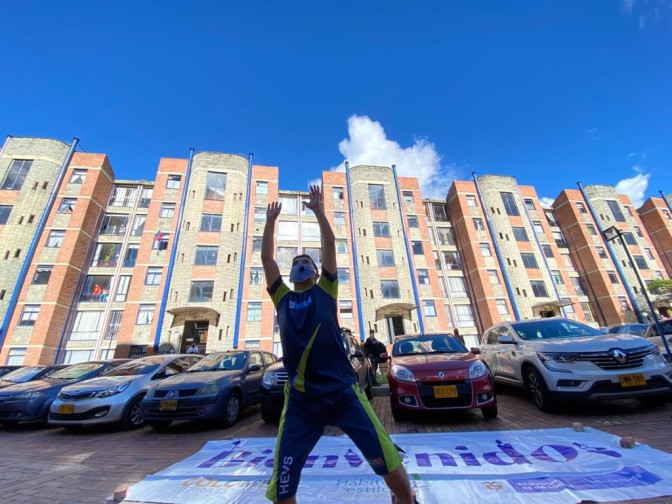 Bogotá, D.C., 16 de mayo de 2020. Desde las 4:00 p.m. los residentes de Compartir, Bochica, etapas 2, 3 y 4, del barrio Bolivia, en Bogotá, disfrutaron de las sesiones de actividad física y recreación que cada miércoles y sábado el Ministerio del Deporte lleva a diferentes zonas de la capital.