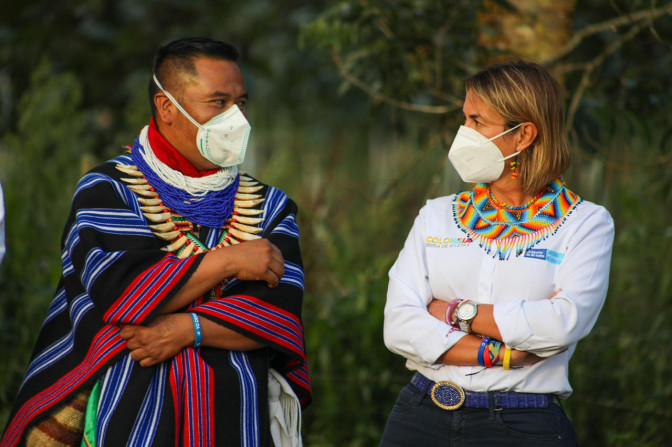 Sibundoy, 26 de marzo de 2021. La viceministra Lina Barrera, en representación del Ministerio del Deporte, visitó este jueves y viernes el Valle de Sibundoy, en el departamento de Putumayo, cumpliendo el compromiso establecido entre la entidad y los pueblos indígenas de la región, para el fortalecimiento de la infraestructura deportiva y las prácticas ancestrales.