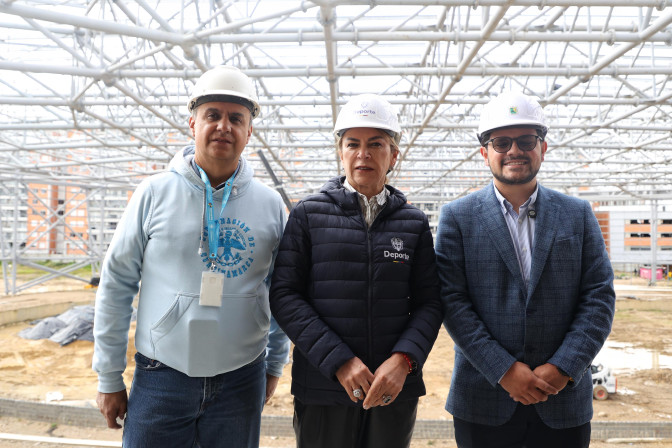 Mosquera, Cundinamarca, 03 de julio de 2025. A 2.516 metros sobre el nivel del mar, en el municipio de Mosquera avanza una de las obras más importantes para el ciclismo en Colombia: el velódromo de altura, que este jueves recibió la visita de la ministra del Deporte, Patricia Duque Cruz, quien hizo un seguimiento técnico a la construcción escenario, que se encuentra en un 68 por ciento de avance.
