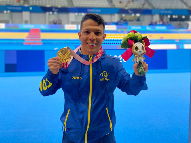 La piscina, su refugio, donde se resguarda, pero también donde salen a flote todas sus fortalezas, seguridades y cualidades. Atrás, en el pasado lejano y con algo de polvo, quedó la historia del temor de lanzarse al agua, esa en la que el miedo se apoderaba de su cuerpo, lo carcomía y lo hacía temblar; en la que la falta de confianza lo hacía ver con inseguridad una pileta. Cuando en su vida aparecieron William Jiménez, su primer entrenador, y el para nadador, Moisés Fuentes, esta tuvo un cambio de visión de 180 grados. Ellos le sembraron el gusto y, sobre todo, la pasión por la natación.En cada brazada entrega su corazón y espíritu, deja el alma: desde que dio sus primeras, los resultados se empezaron a reflejar y no solo en los tiempos de las competencias sino en la sincronización que tenía con el agua, en cómo todas esas cualidades se potenciaban para hacerlo rendir a un porcentaje superior a los demás.Rápidamente, llamó la atención de su departamento y en sus primeros Juegos Paranacionales, en Cali, con tan solo 16 años, se subió al podio en tres ocasiones. En dos, ganó plata y en una, bronce. Era el nacimiento de una estrella.La cima de su Everest era el primer puesto en los Juegos Paralímpicos. A ese punto se enfocaban todos sus sueños, hacia allá apuntaban sus luces. Sabía que era un camino difícil, pero lo afrontó con coraje y determinación. Foto: Nelson Crispín finalizó en la primera posición en la prueba combinada 200 mts, en los Juegos Paralímpicos de Tokio 2020. Estableció récord parapanamericano en los 100 metros pecho en Guadalajara, 2011, certamen en el que se colgó una medalla de oro. Esto le dio su pase a Londres 2012. La primera parte de su recorrido se había completado: en la capital británica dio el primer sorbo de grandeza, terminó en la cuarta posición en los 100 metros pecho, con apenas 20 años.Su siguiente ciclo con los Juegos Paralímpicos de Rio de Janeiro 2016 como objetivo, lo afrontó con mayor madurez y sus tiempos maravillaban más. En el Mundial de para natación, que se disputó en Montreal, en 2013, empezó a moldearse su figura a nivel internacional, al lograr cinco medallas: una de oro, una de plata y tres de bronce.Algo que confirmó en el mundial de Glasgow, dos años más tarde, en el que se subió en tres ocasiones al podio; y, también, en los Juegos Parapanamericanos de Toronto, en el que se colgó seis preseas. Para entonces, ya hacía parte del programa Atleta Excelencia de Coldeportes, hoy Ministerio del Deporte.En Rio de Janeiro completó un 80 % del camino que se había trazado hacia el oro paralímpico. En tres ocasiones finalizó en la segunda posición para convertirse en uno de los primeros atletas nacionales en ganar tres medallas en una edición de estas justas. Un año para el recuerdo, en el que terminó de darse a conocer a todo el país y al mundo, en el que fue condecorado y se convirtió en eterno para este sector a nivel nacional. En el que su imagen tomó el peso de figura.Pero fue en el camino hacia Tokio donde terminó de elevarse al Olimpo. En el Mundial de 2017, en Ciudad de México, dio un abrebocas de lo que sería el periplo hasta la capital japonesa. Ganó cinco medallas, cuatro de ellas de oro. Puso a sonar el himno nacional a lo largo y ancho del mundo. Algo que emuló en los Juegos Parapanamericanos de Lima en 2019, en los que ganó cinco de oro, una de plata y una de bronce.Ahora en Tokio tocó el cielo con las manos: se coronó campeón paralímpico en la modalidad de 200 metros combinado individual, una competencia que no era su fuerte, pero en la que dejó claro que el agua es su sitio seguro, el lugar donde tiene la capacidad de volar e ir más allá de donde muchos han llegado; donde los récords son una brecha imaginaria que se superan con trabajo, dedicación y esfuerzo; en el que le dibuja sonrisas a todo un país y en el que su imagen se enaltece hasta el punto de convertirse en inmortal de este deporte.